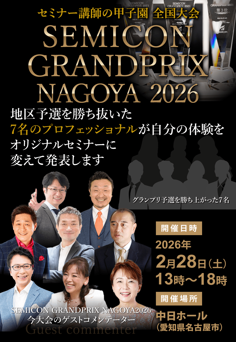 「セミコングランプリ名古屋2026」、あなたの人生を変えるきっかけになるかもしれません。